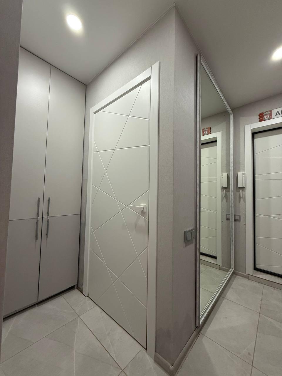 В коридоре — качественная входная группа и вместительный встроенный шкаф.